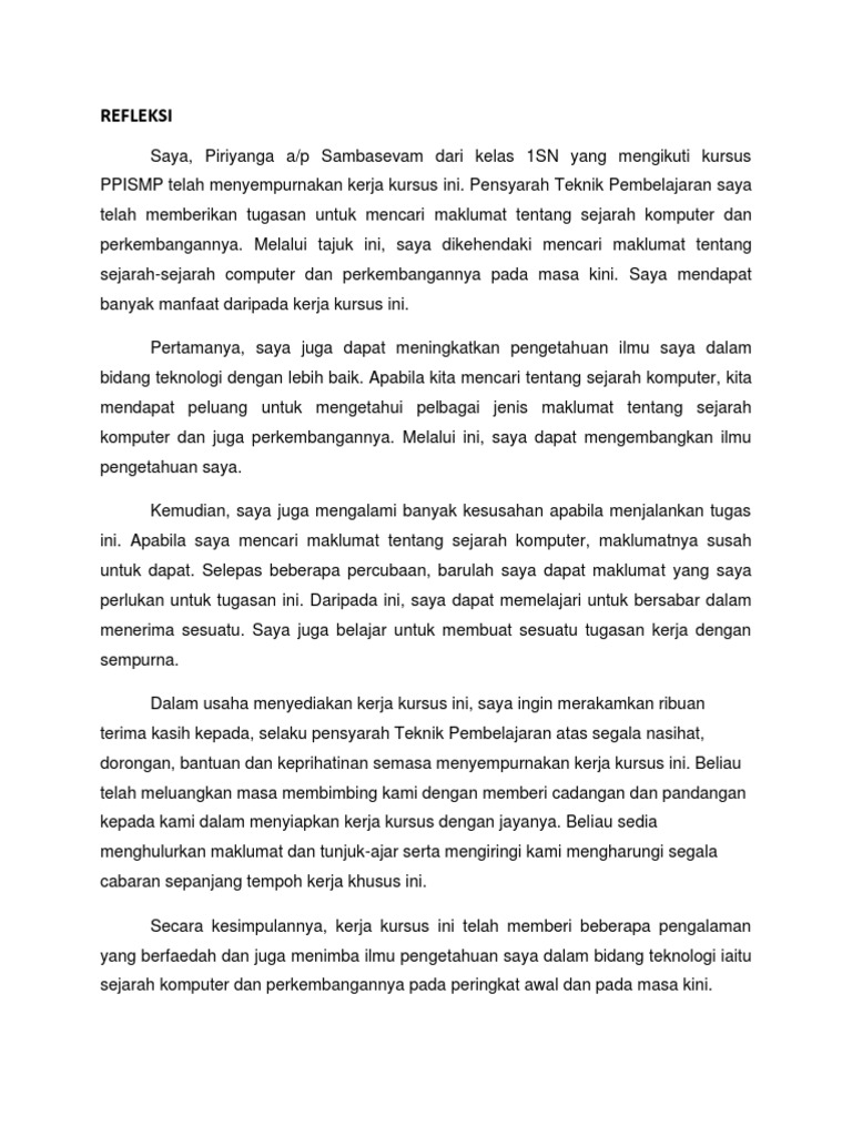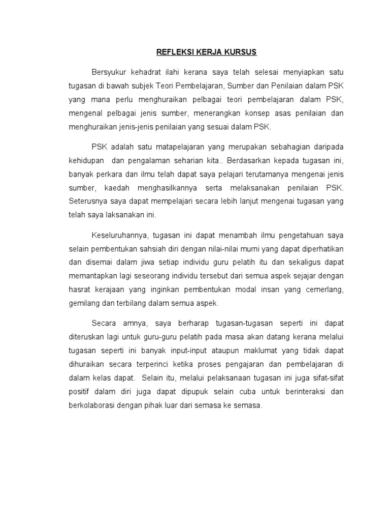 Contoh Refleksi Kerja Kursus Pdf