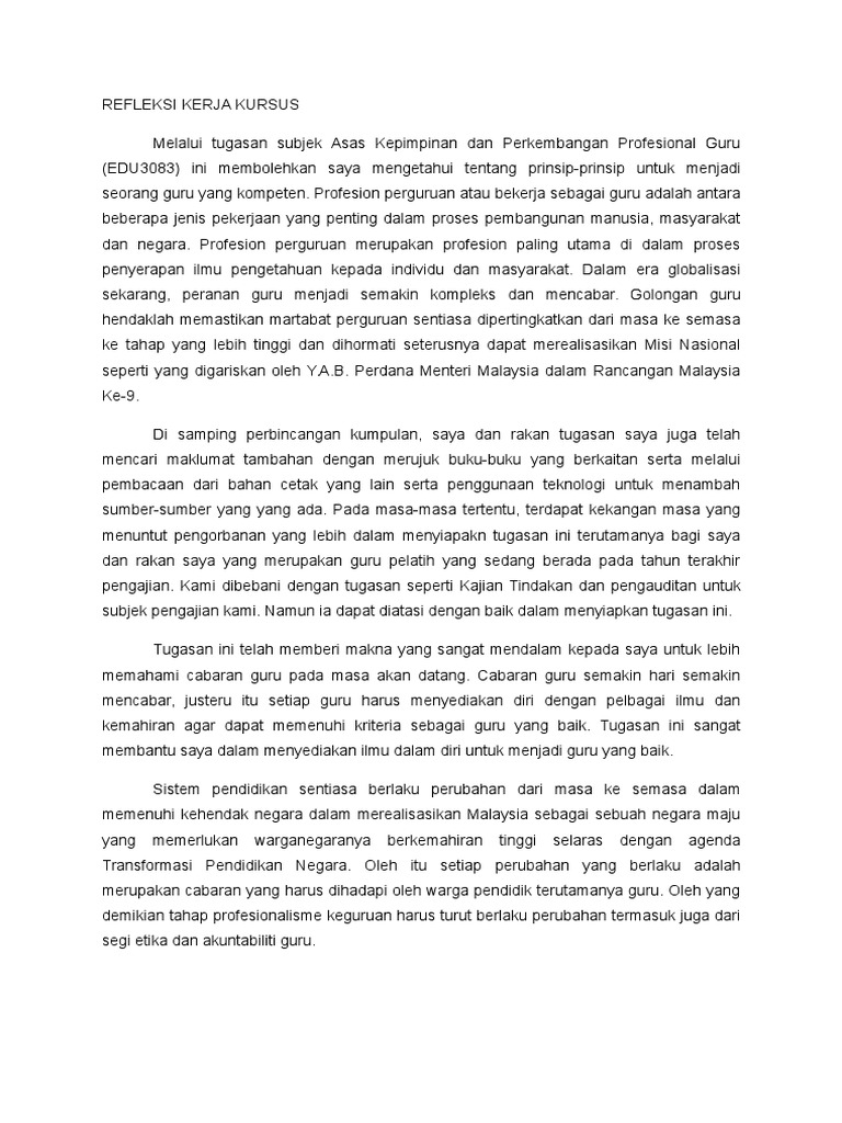 Refleksi Kerja Kursus Edu 3083 Pdf